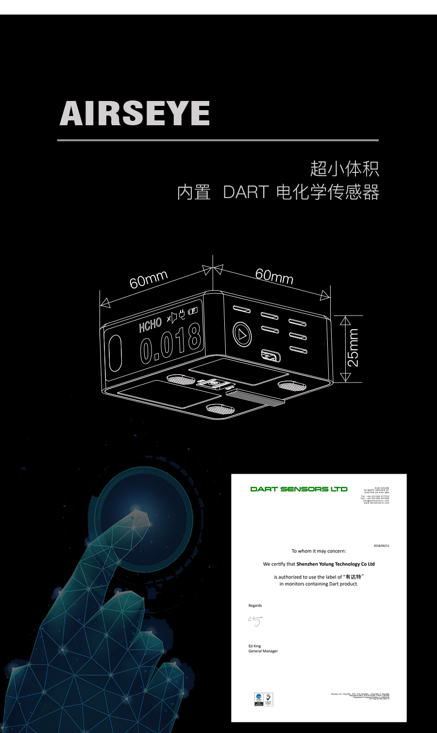 通过强大的DART电化学传感器给用户带来不一样的测醛体验!放心、极/致、科技融为一体。